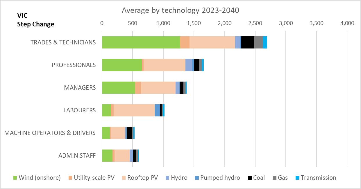 Figure 7 Victoria, in-demand occupations annual requirement by technology, Step Change