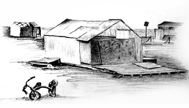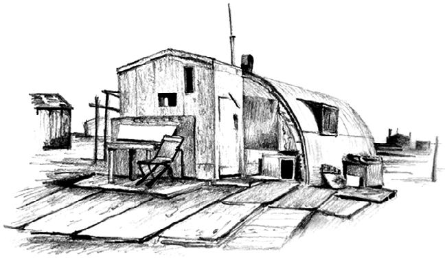 Above: studies of vernacular self-built hunting cabins in the Arctic. Despite a run-down appearance, these are well-loved huts used by the people often. They demonstrate a resourceful use of found materials.