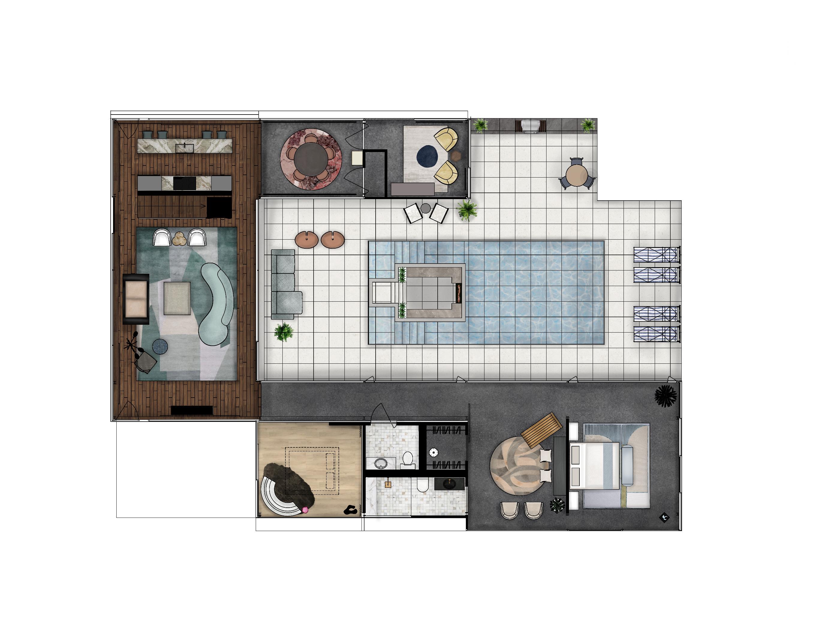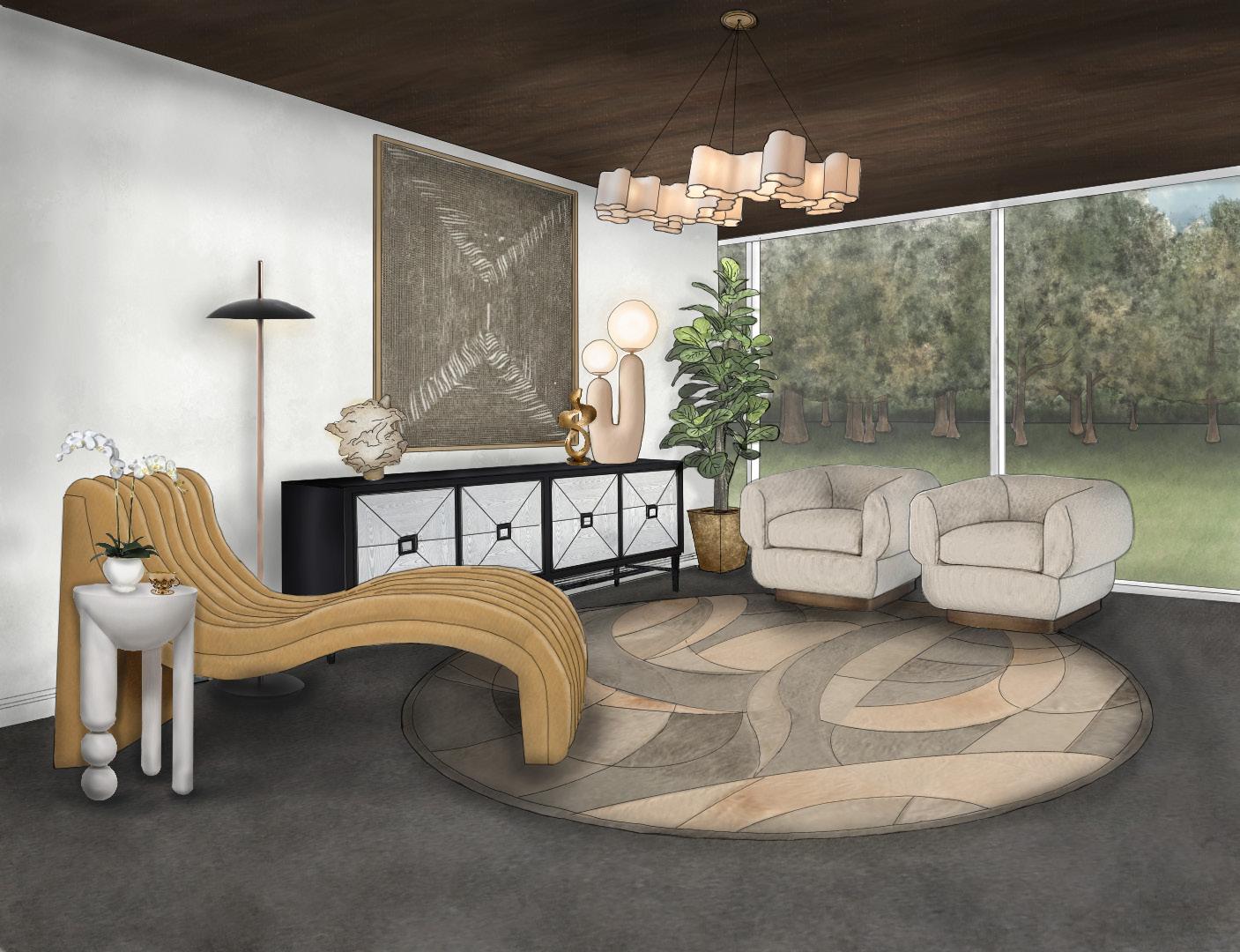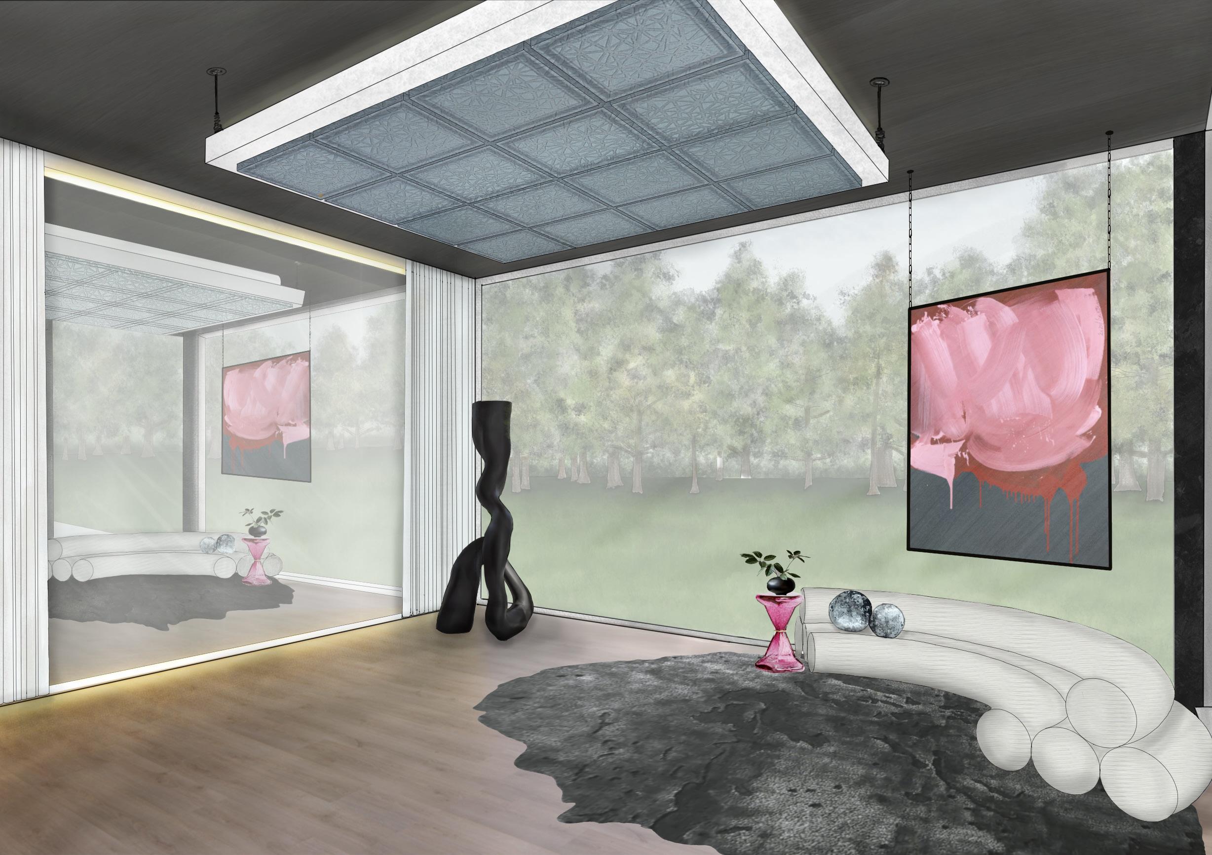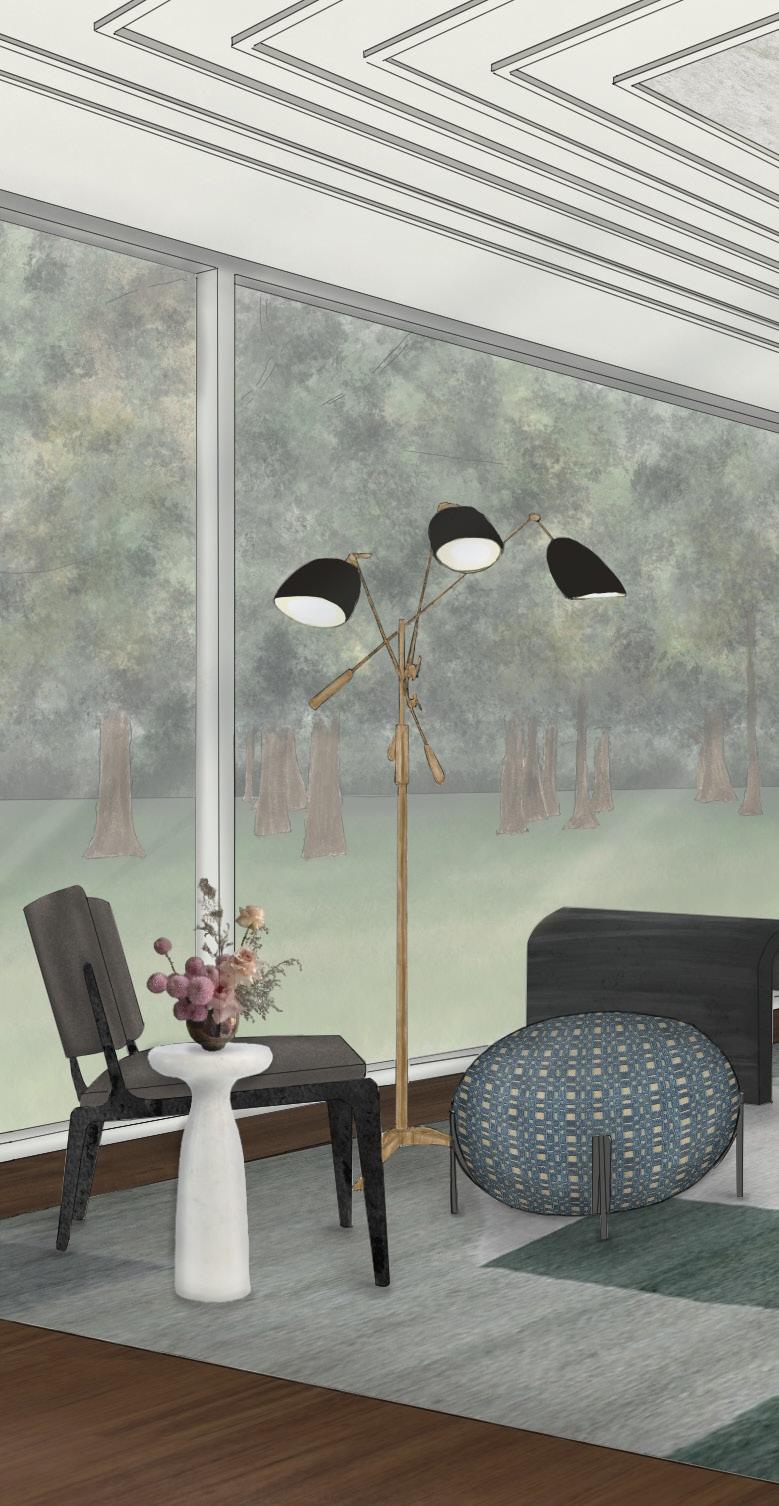 Sahara Rose’s new glass house in the woods will celebrate the beauty and richness of the area around it. What was once a simple glass shell now includes intentional furnishings and thought-out details. Each selection and the combinations convey a feeling of luxury, peace, and boldness that aligns with the needs of the client. Featuring Well Design guidelines, toxic-free spaces, and meditation spaces, this space is grounded and serves as a healing retreat for Sahara.