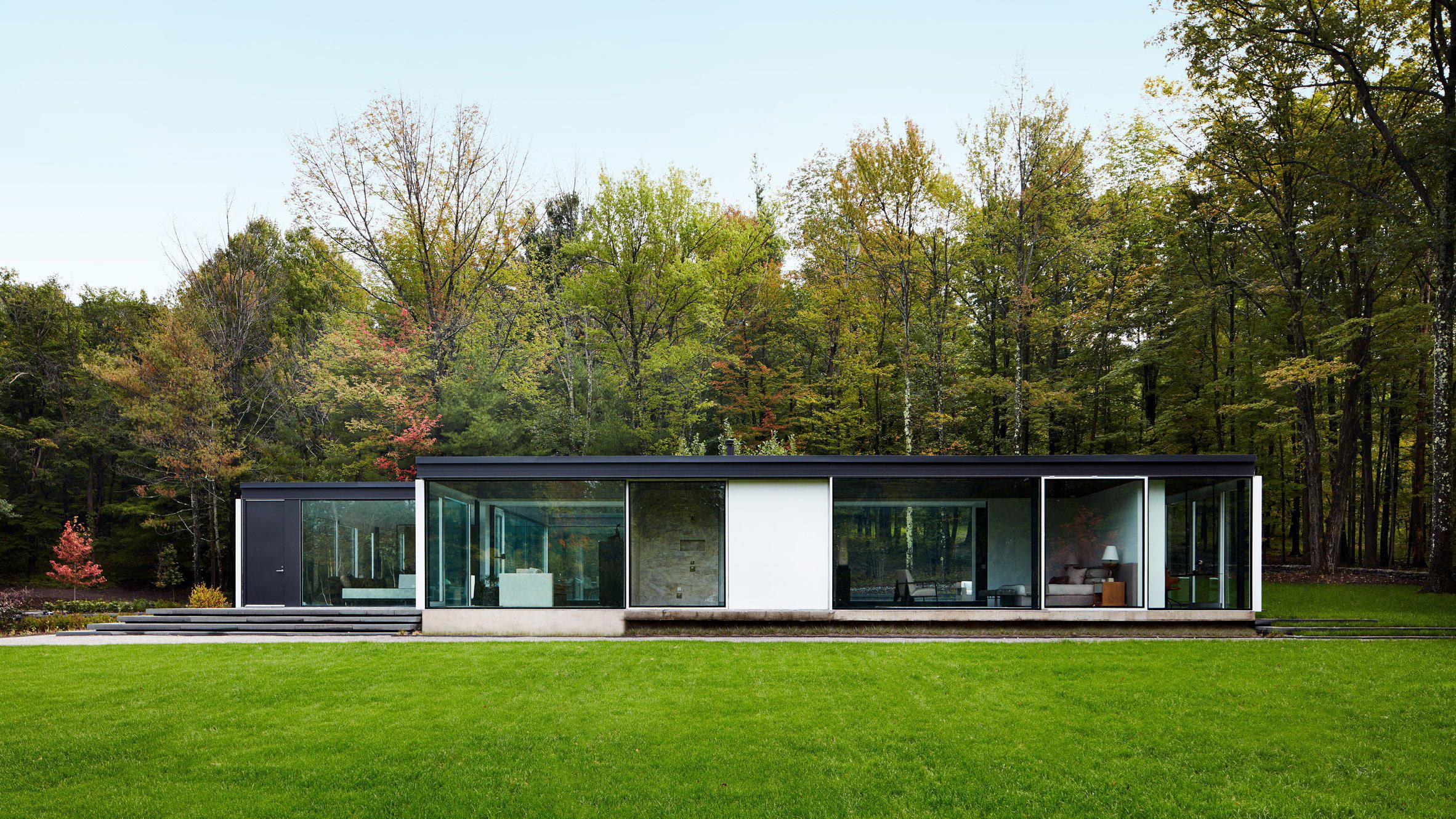 With its dramatic woodland backdrop, this iconic glass house creates a perfect rejuvenating retreat for the young new client, Sahara Rose. Sahara was seeking a weekend Pediatr that would encourage a fresh start. She needed a space that supported her ayurvedic, yoga, and meditation habits. This redesigned home meets those needs through dedicated meditating spaces, exposure to daylight and biophilia, and a kitchen featuring a steam oven and a Lomi product. Each space has an intentional color pallet inspired by views seen from home. The home is a smart home, including voice shades from Lutron and dimmable lights to conserve energy. The home also meets many of the WELL Building Certifications specifically under the Mind category. Wit h the house being mainly glass there are no shortages of views that incorporate nature into the space. Each is design ed to reflect and support the views seen outside. With the simple clean lines of the exterior of the home, it created the perfect nod to a contemporary and modern interior. The design style is simple but is full of color to bring enjoyment to Sahara’s personality. The hope is that this space will bring a new experience in the woods to this new client.