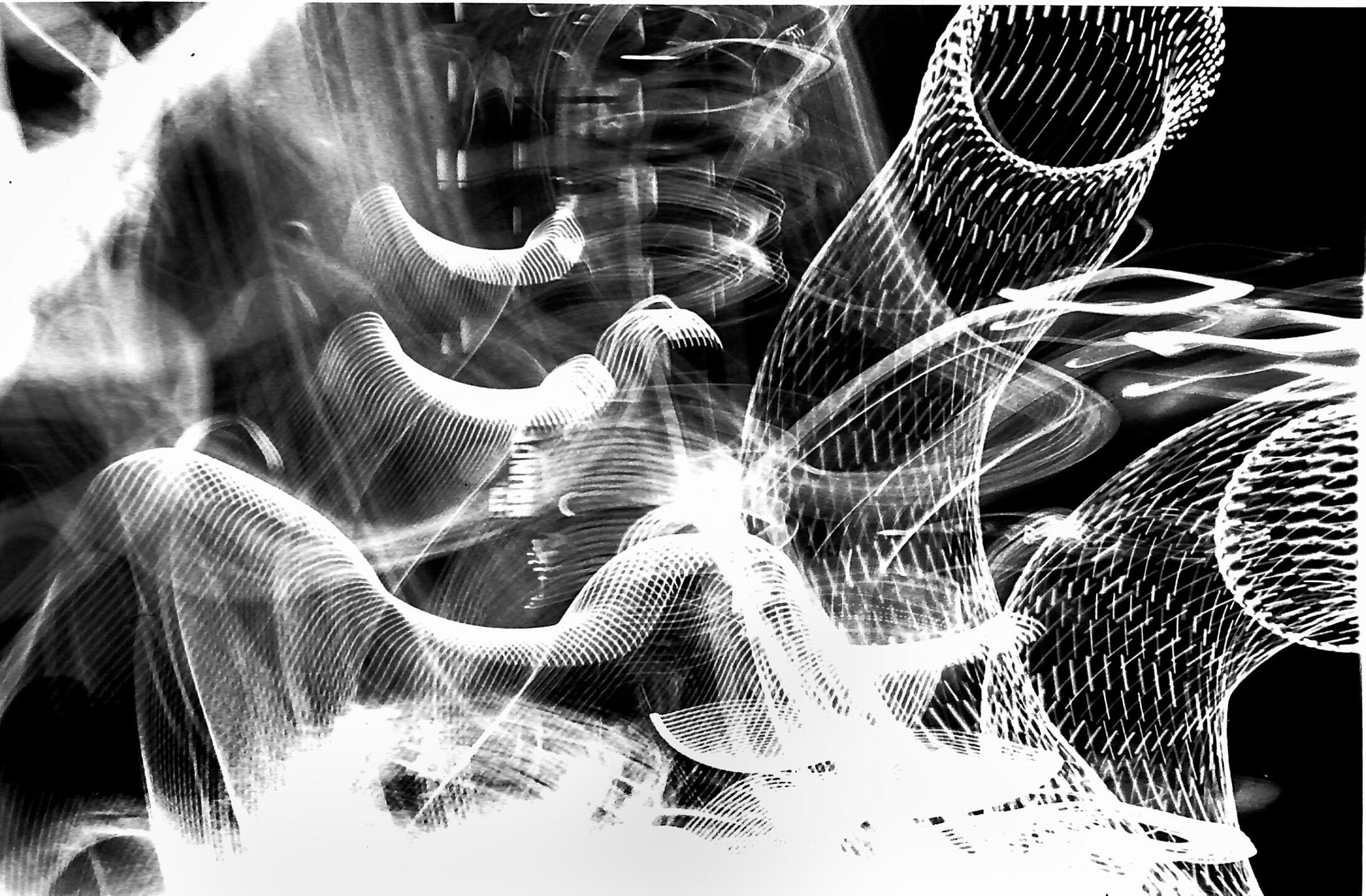 This photographic series explores a critique of Harold Rosenberg’s conception of the irreproducible artist’s gesture. Each photo was taken in an arcade with a shutter speed of ten seconds, using the camera as a recorder of gesture. The singularity of the gesture becomes convoluted by the reproducibility and distortion of the dark room process. Therefore, photography flattens the moment of painting and the gesture of the body.