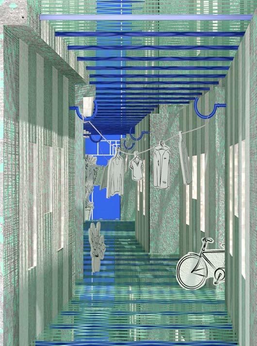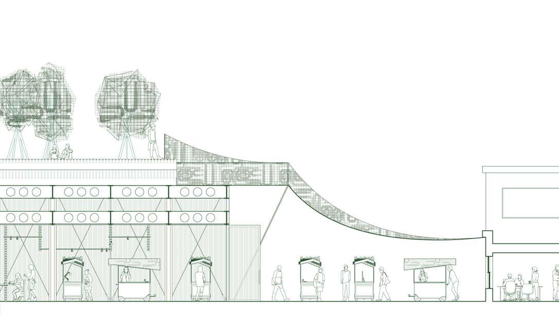 Through a companion shed on the site of the 9 Gammon Building, we further challenge the distinction between legality and legitimacy by connecting and supporting the carts through community coalition. The incubator shed acts as a space to produce, service, and park the carts--a space for informal knowledge sharing and making. The shed, like the cart, is topped with a camouflaged shroud shielding the building from the aerial mechanical eye.