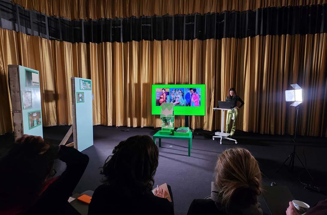 The visuals of this project, a split screen aesthetic that flips between image and its support, reveals the behind the scenes spaces and support of medical and filmic production as the driver of the project. The flexible behind the scenes space expands into programmatic space that allows for the interaction between public figures and private mothers that utilize the space–including yoga spaces in the sound stage’s structural attic, birth classes between sound stages, and lactation rooms. The images created within the space are active instead of passive influencer pregnancy photos. A slight shift of the camera brings supports into the scene, showing how the mother crafts her pregnancy portrait. This inclusion legitimizes these photos.