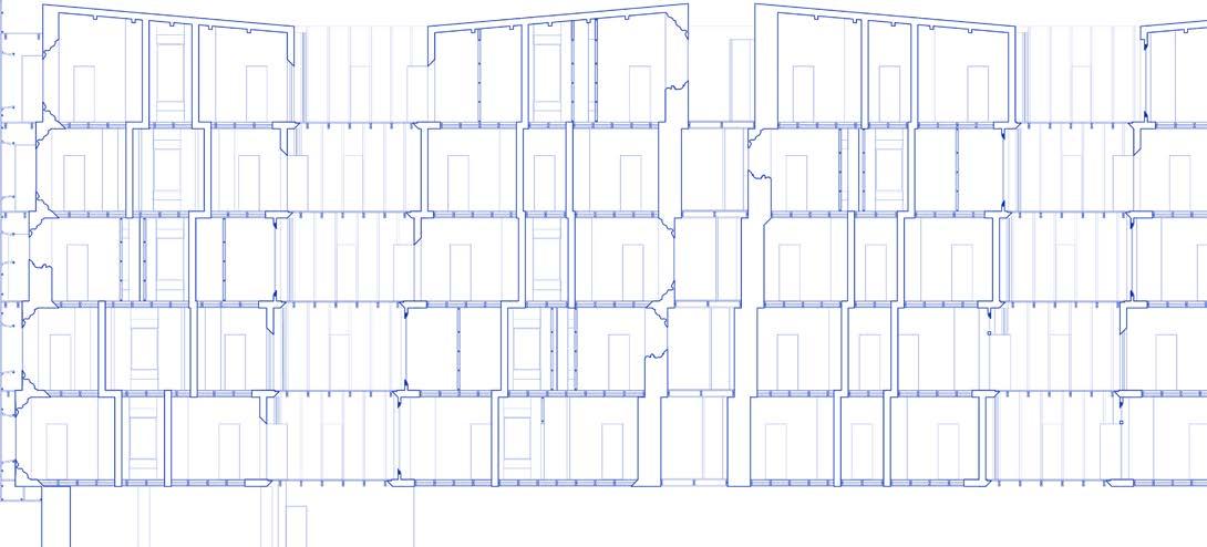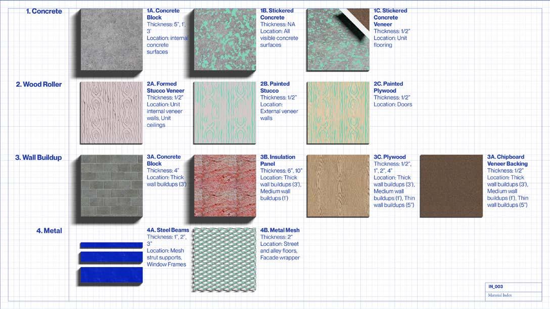 Bricolage is an aesthetic consequence of working with found materials and like multi-family housing has connotations of affordability and impermanence. Our process of veneering seeks to disrupt the reading of recycled material as composite, hiding its kit of parts tectonics through a monolithic veneered surface structured by the mitre cut.