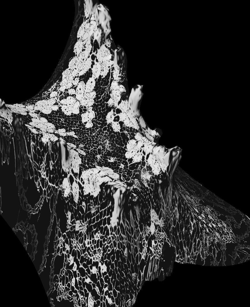 In expanding my scope for this project, I became interested in the dualities of fabric when applied to a subject. Within the shroud typology draped fabric becomes a semi autonomous surface in which an absent or invisible object is figured. The overlay, another typology, creates a low poly simulacrum of its contained objects. Within this project I wanted to utilize fabric drape to imply our natural subject without its presence–to be an image of lace and an image of the object being draped.