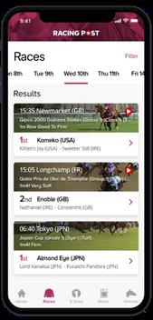 Racecards and official results for all race tracks, plus pedigree insights, breeding data, and performance statistics.