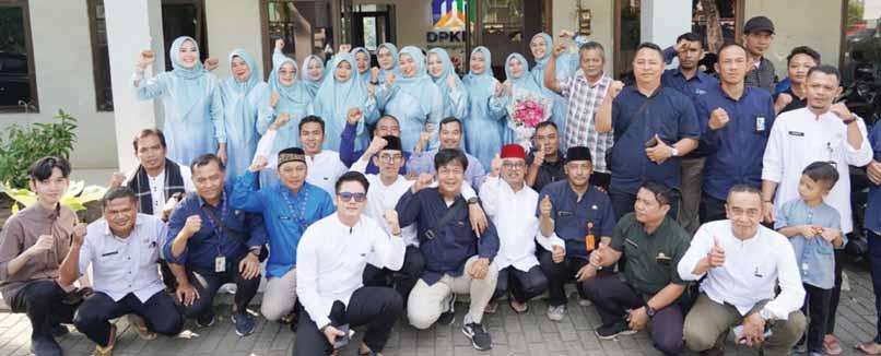 KOMPAK: Para pengurus dan anggota DWP DPKPP foto bersama dengan para suami mereka di depan kantor UPT. FOTO OMER/RADAR BOGOR