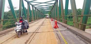 dipakai. Karena kami hampir setiap hari beraktivitas melewati jembatan itu,” tutur Suhendar. Sebelumnya, Wakil Bupati Bogor, Ade Ruhandi membenarkan bahwa kondisi Jembatan Leuwiranji sudah tidak memadai. Hal itu disampaikannya saat meninjau langsung jembatan tersebut pada Rabu (18/6) lalu. Selain konstruksi jembatan yang mulai ringkih, beberapa bagian material jembatan juga terpantau mulai hilang dan rusak. ”Saya pada hari ini melihat Jembatan Leuwiranji. Usianya cukup tua dan sudah rusak, dan solusinya harus ada jembatan baru dan yang ada direnovasi,” tandasnya. (cok/c)