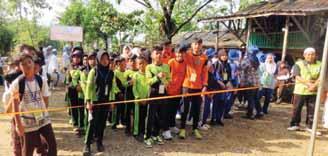 diselenggarakan dengan baik,” ujar Anita. Kegiatan lintas alam berlangsung seru karena peserta diperkenalkan dengan potensi geopark yang berada di Desa Bojongrangkas Ciampea. Rute sepanjang dua km harus dilewati peserta lintas alam mulai dari area bawah Gunung Kapur sampai puncak Gunung Roti Ciampea mulai jam 09.00 WIB. Medan menanjak menjadi kegiatan penuh tantangan bagi para peserta lintas alam Tingkat SD dan SMP dari 12 Sekolah dari Desa Bojongrangkas. Berbagai pihak hadir dalam kegiatan lomba tidak hanya kades Bojongrangkas tapi juga Babinsa, Babinkamtibmas, BPD Bojongrangkas,Ketua Bumdes, Bank BJB, Credifok, Karang taruna, Kepala Sekolah dan para guru serta masyarakat sekitar Desa Bojongrangkas, Ciampea.(*pia)