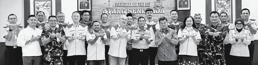 KOMPAK: Danlanud ATS, Marsma TNI M. Taufiq Arasj (kelima dari kiri-depan) berfoto bersama dengan panitia FMP 2023, kemarin.
