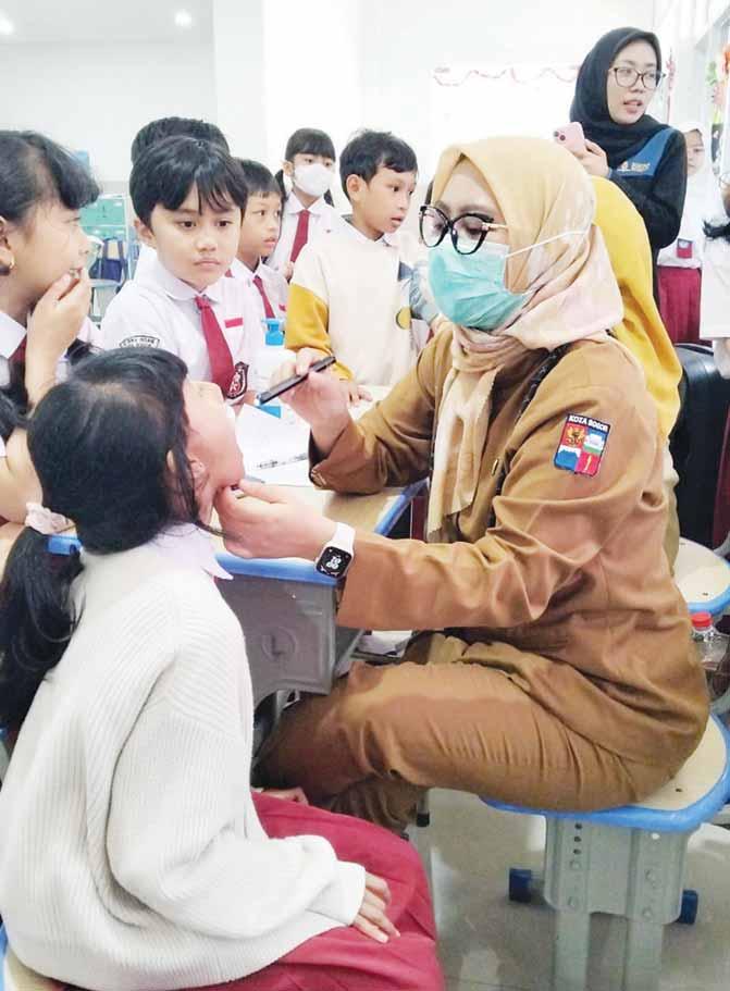 sekali. Adapun pemeriksaan Kesehatan mencakup mulut, telinga, dan mata. Selain itu, juga ada penyuluhan Kesehatan dan pemberian obat cacing. “Harapan kami, semoga semua murid paham pentingnya menjaga kesehatan diri sendiri,” ujar Eka