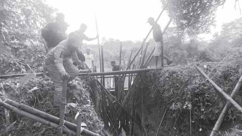 air mengalir ke empang milik BUMDes dan ikannya hilang,” ungkapnya, Senin (26/1). Pasca kejadian, pihaknya bersama aparat setempat dibantu warga sekitar gotong royong memperbaiki jebolnya tanggul Setu Lampiri. Pemdes Tamansari juga telah berkoordinasi dengan dinas terkait untuk melakukan penanganan jangka panjang. ”Untuk sementara, warga bersama-sama memasang turap bronjong dan batu belah, ditambah bambu agar air yang jebol tidak terlalu
