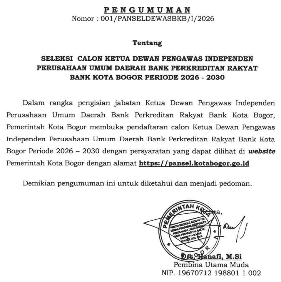 BOGOR-Tahapan seleksi Direksi Perumda Tirta Pakuan Kota Bogor mulai mengerucut. Dari seluruh pendaftar, hanya 15 calon direksi yang dinyatakan lolos seleksi administrasi. Posisi Direktur Pelayanan dan Bisnis menjadi kursi paling ketat persaingannya karena hanya menyisakan tiga kandidat.