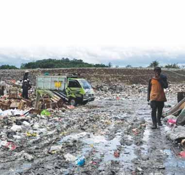 SEGERA DIBANGUN: Warga melintas di tumpukan sampah TPA Galuga, Kecamatan Cibungbulang, Kabupaten Bogor.