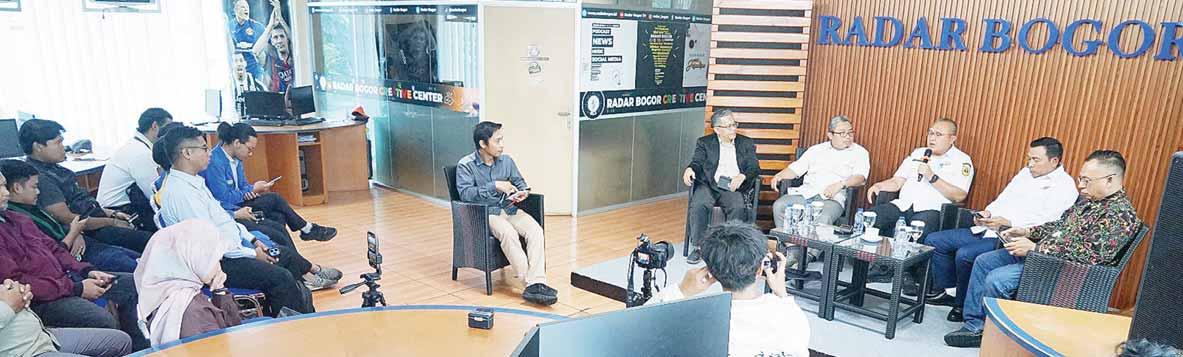 DISKUSI: Redaktur halaman utama Radar Bogor Imam Rahmanto (tengah) memandu diskusi membahas kebijakan Gubernur Dedi Mulyadi terkait penghentian penerbitan izin perumahan di wilayah Jawa Barat, bersama narasumber dari berbagai kalangan, dalam talkshow Radar Bogor di Graha Pena, Rabu (28/1).