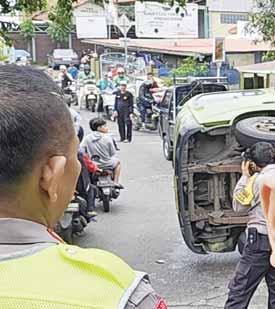 dan viral di media sosial. Dalam video yang dterima Radar Bogor, kondisi truk bermuatan hebel berwarna hijau tersebut terguling. Bagian depan truk menutup sebagian jalan.