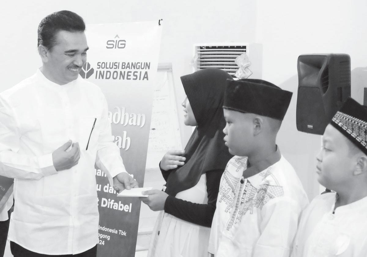 NAROGONG–Ramadan adalah waktu yang tepat untuk memperkuat nilai kebersamaan dan kemanusiaan. PT Solusi Bangun Indonesia Tbk (SBI) Pabrik Narogong, anak usaha dari PT Semen Indonesia (Persero) Tbk –SIG, salurkan santunan dan sembako untuk 100 anak yatim dan 160 sahabat difabel di Clubhouse SBI Pabrik Narogong, Selasa (2/4).