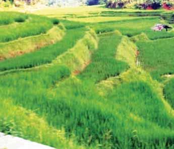 Sejauh mata memandang, sawah yang berbentuk terasering selalu memanjakan. Sawah terasering ini juga