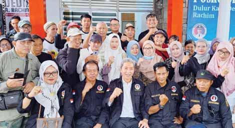 Dedie Rachim,” ucapnya. Indras menjelaskan, mulanya keberadaan relawan DKDR sendiri belum memiliki posko, namun tahun ini mendapat dukungan dari salah satu pembina yang akhirnya diresmikan saat ini. ”Kami bisa menempati posko ini secara gratis, targetnya insyaallah yang terbanyak memberikan suara kepada kang Dedie Rachim,” ucapnya. Setelah peresmian posko dan halal bihalal ini, Indras mengaku langsung tancap gas untuk mengenalkan Dedie A Rachim yang akan maju di Pilkada 2024, mendatang. ”Kami memiliki program 3G, gercep, gaspol, dan geber, delapan bulan itu waktu yang sempit, kami akan terus mencari dukungan untuk kang Dedie,” imbuh dia. Sementara itu, Ketua Umum DKDR, Ferry I Mulyadi menjelaskan, keberadaan posko DKDR ini selain menjadi rumah untuk relawan, rencananya akan dijadikan pusat pelatihan para pelaku UMKM. ”Segala kegiatan disini pusatnya, dan mewadahi untuk tingkatkan Kecamatan,” katanya. Ditempat yang sama, Wakil Wali Kota Bogor Periode