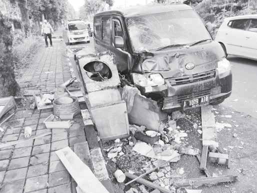 diduga mengantuk dan mengalami microsleep sehingga membuat mobil itu oleng. Pengemudi yang hilang kendali kemudian menabrak gerobak soto yang sedang berjalan di sisi kanan jalan,” bebernya. Kejadian ini pun membuat sang pedagang soto mengalami luka-luka. Gerobak soto miliknya pun tampak hancur berantakan. Korban diketahui berinisial Y dan berdomisili di Kebon Pedes, Kecamatan Tanah Sareal. ”Korban mengala-
