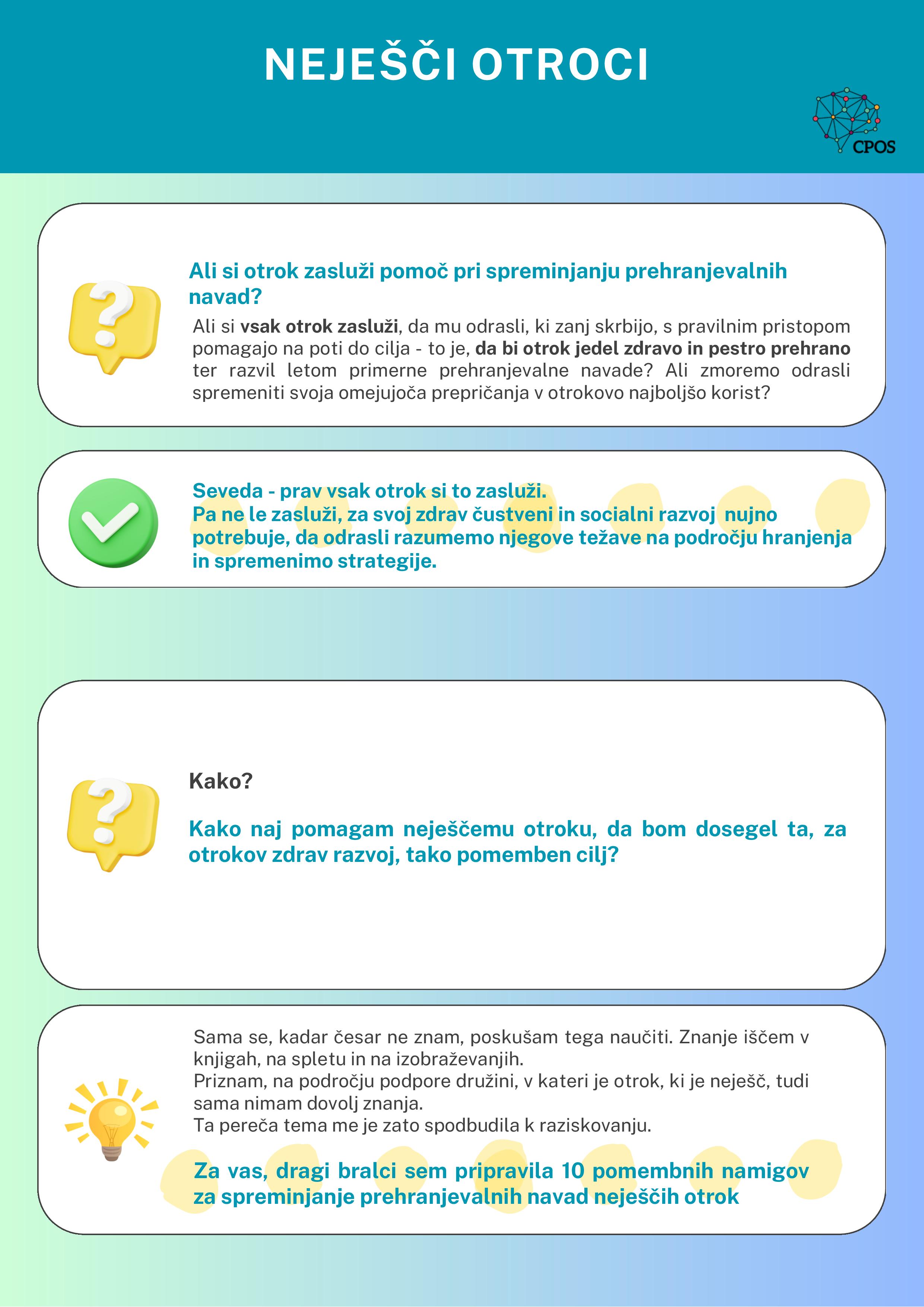 Praktični nasveti za starše, vzgojitelje in strokovnjake - prva pomoč za vse, ki ste v stiku z neješčim otrokom.
