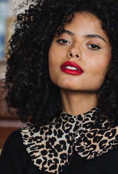 Left to Right: Betty Blouse £140 Leather Culotte £295 Jean Blouse £140 Jazzy Party Pant £140 Rene Heel £170 Sara Mohair Blend Jumper £140 Hand Embellished Lola Sequin Skirt £195 8 raefeather.com | 01280 734100 Leopard Collar £30 Hand Embellished Sequin Collar £40