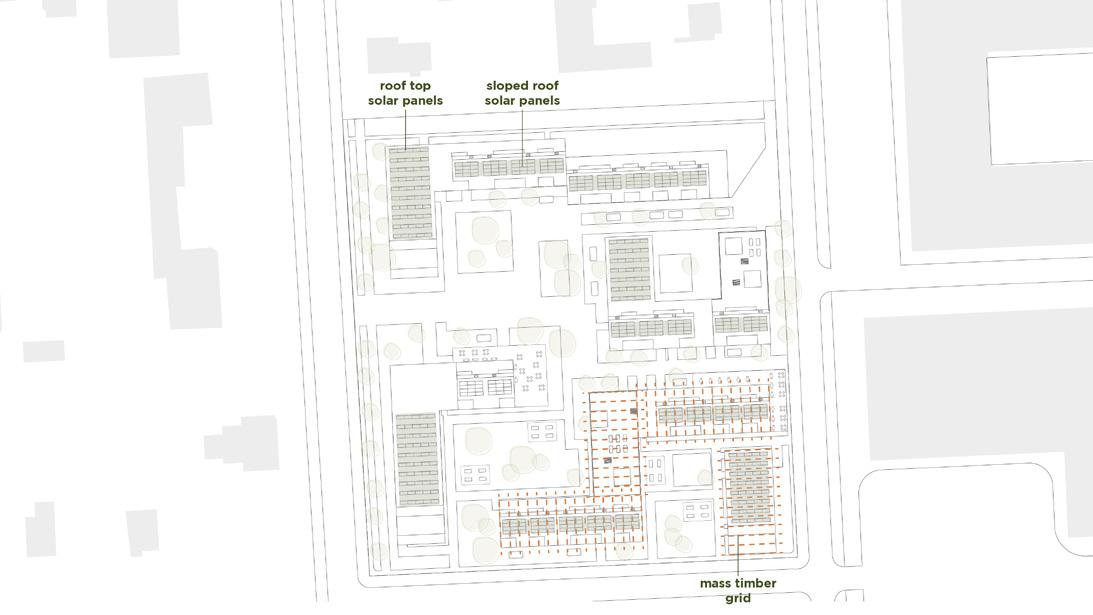 Roof plan indicating mass timber grid and roof top solar panels.