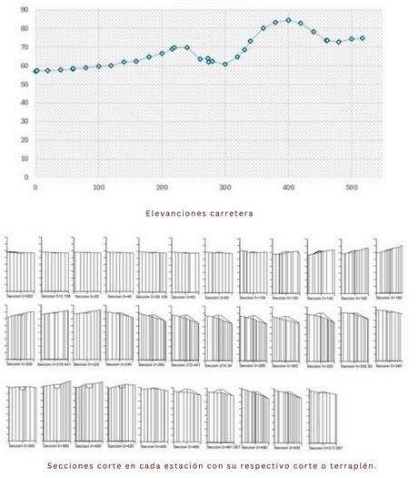 largo del estación medida elevaciones alcanzando un para luego descender hasta la estación 0+517, donde la elevación final es de 74.7 m.