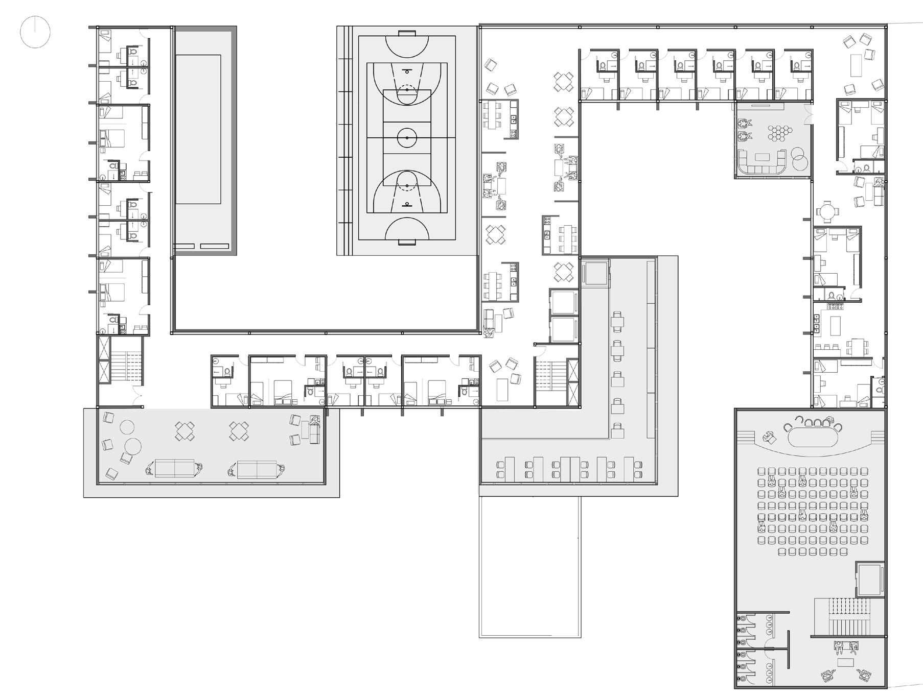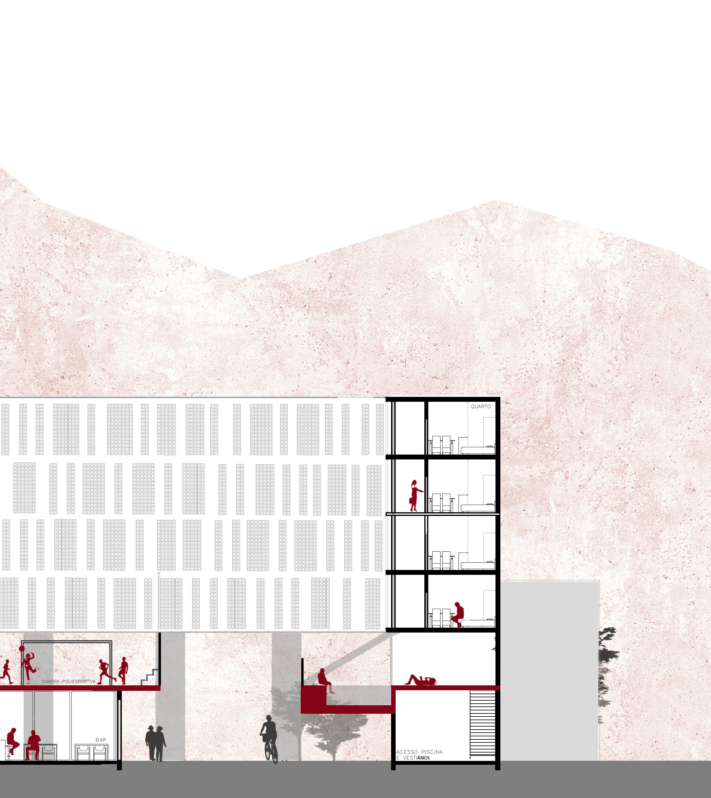 Além da ativação do térreo, foram implantados anexos a forma principal do edifício - onde se encontram os dormitórios - que concretizam a criação de espaços de uso público e que incentivam a coletividade. Diferentes gêneros de convivência são oferecidos, entre eles o esporte, a cultura e o lazer.
