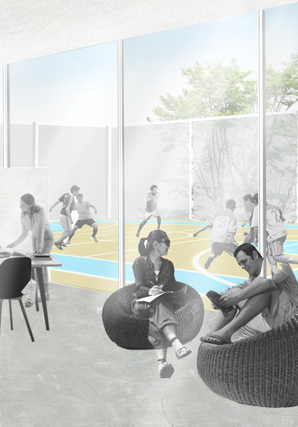 1. CRIAR UM ESPAÇO INTERNO ABERTO 2. AUMENTAR A RELAÇÃO COM A RUA E ABRIR PARA AMBIENTE ESPORTIVO