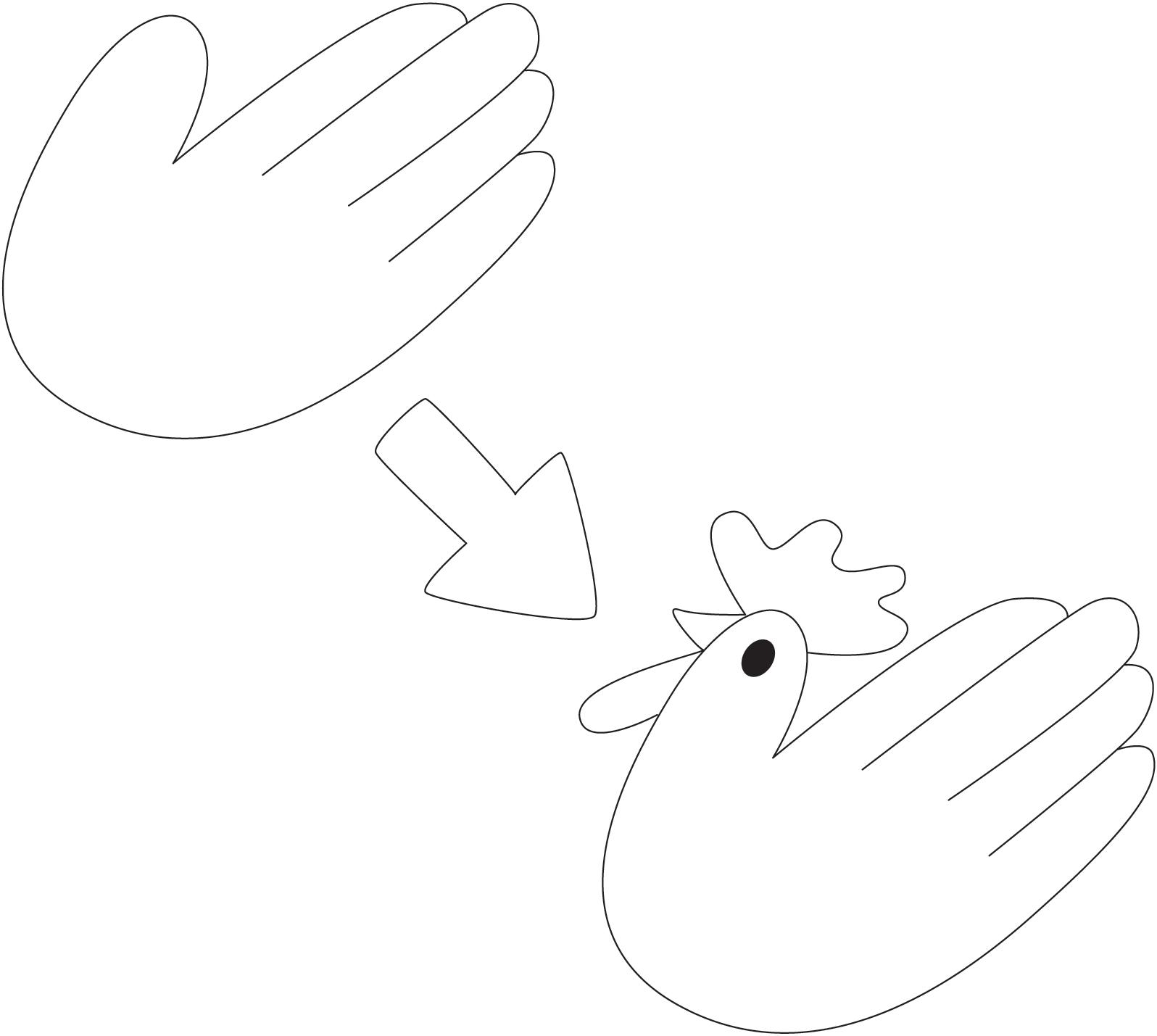 L’alunno deve colorarsi il palmo della mano con le tempere (scegliere colori simili al piumaggio delle galline). Sul cartoncino (su uno si riescono a fare 2 galline) fare l’impronta della mano, posizionando il pollice bene in alto e le altre dita unite. Una volta che l’impronta è asciutta, disegnare la cresta, il becco, i bargigli e l’occhio. Si può decidere di ritagliare la gallina o di appendere direttamente il foglio alla finestra.