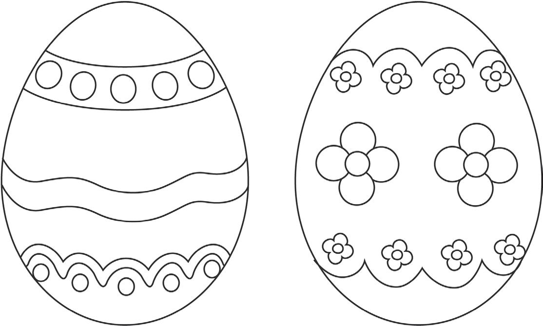 Fotocopiare le figure 32 e 33 ingrandendole del 200%. Dare le fotocopie ai bambini perché le colorino (l’ideale sarebbe da entrambe le parti). Fare un foro sulla sommità dell’uovo. Far passare prima il nastrino e poi fare un fiocco, se si intendono appendere allo stipite della porta o agli infissi delle finestre. Se si fissano sul vetro usare lo scotch.