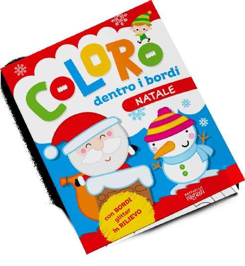 Tanti simpatici disegni natalizi con luccicanti bordi a rilievo per imparare a colorare dentro i contorni.