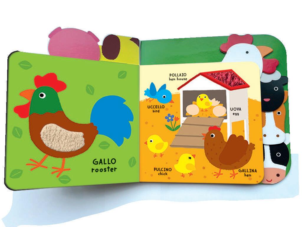 Osserva le divertenti illustrazioni e sfiora con le dita gli inserti tocca-e-ascolta in italiano e in inglese, che trovi in ogni pagina!