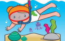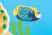 Una storia allegra e un personaggio che galleggia nell’acqua. pesciolina