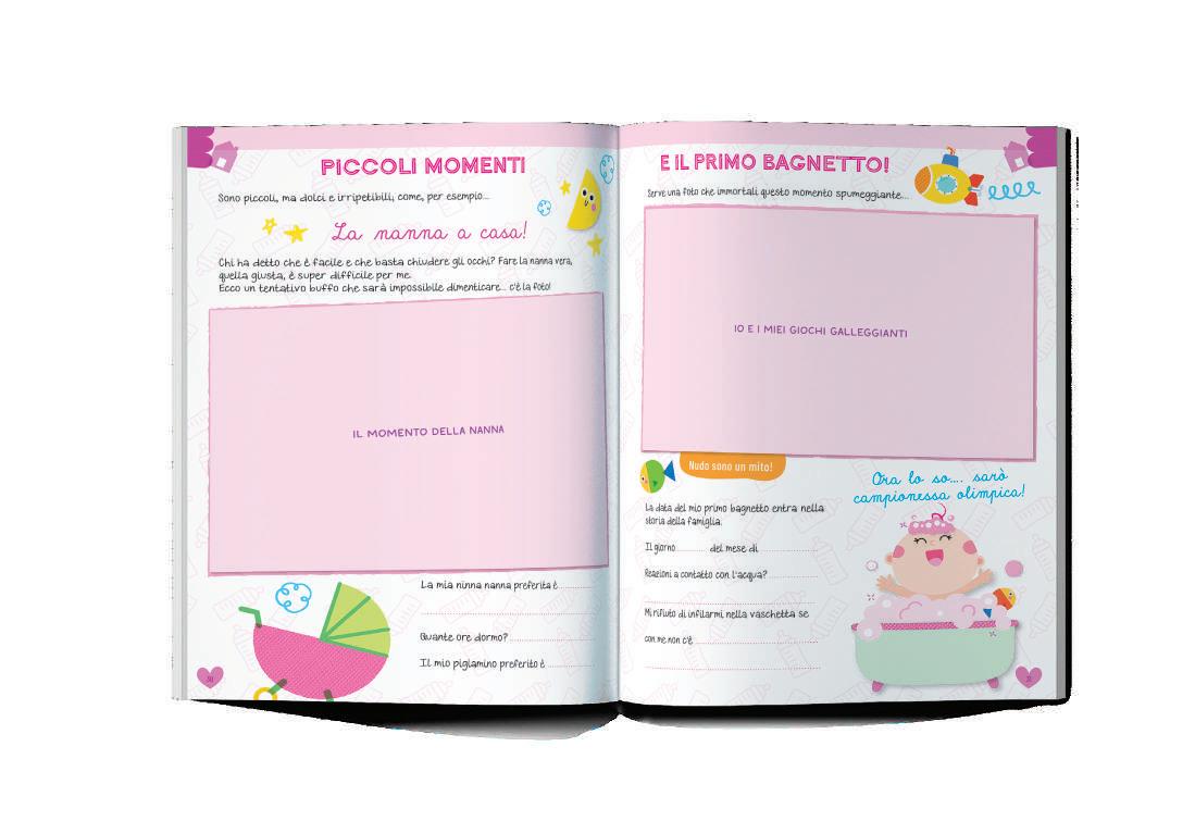 “Questo è il mio primo diario, ancora tutto da scrivere. Sarà uno scrigno di ricordi e di momenti preziosi: l’attesa e la nascita, i primi passi, pasticci e pappe, feste e compleanni.”