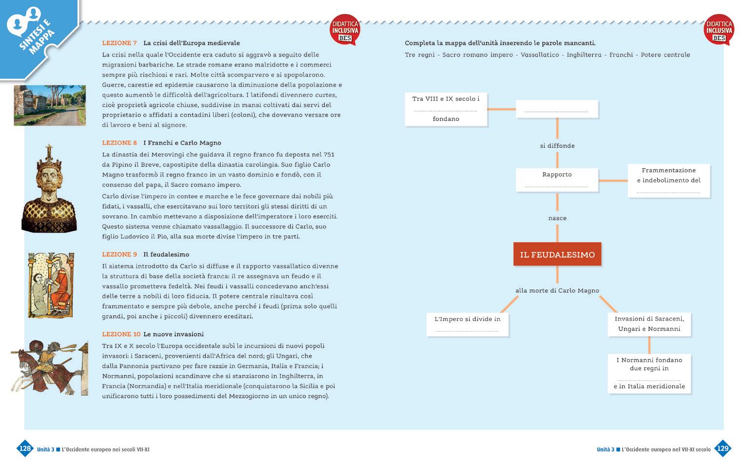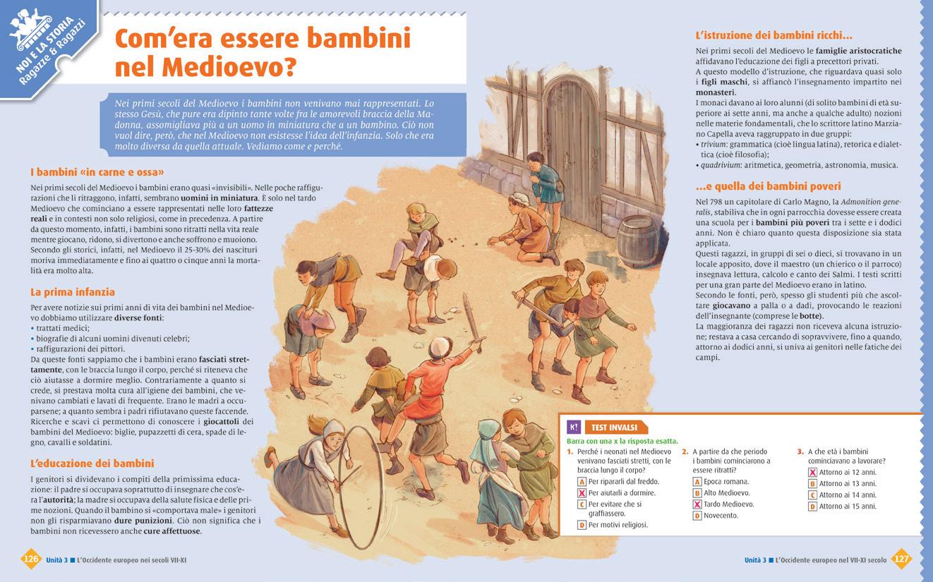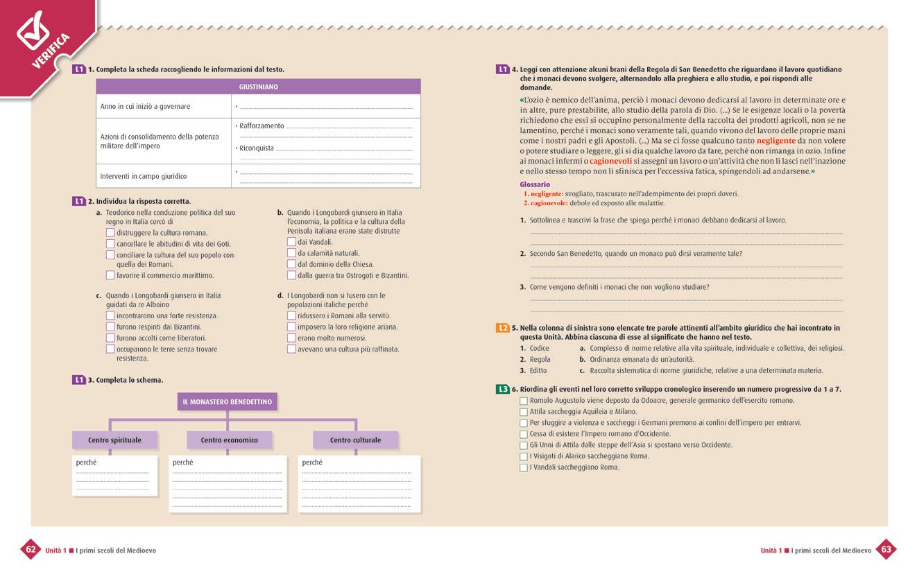 Rielaborazione dei contenuti attraverso esercizi più complessi che richiedono l’utilizzo di competenze. Nelle pagine «Facciamo storia insieme» le attività hanno una modalità cooperativa.