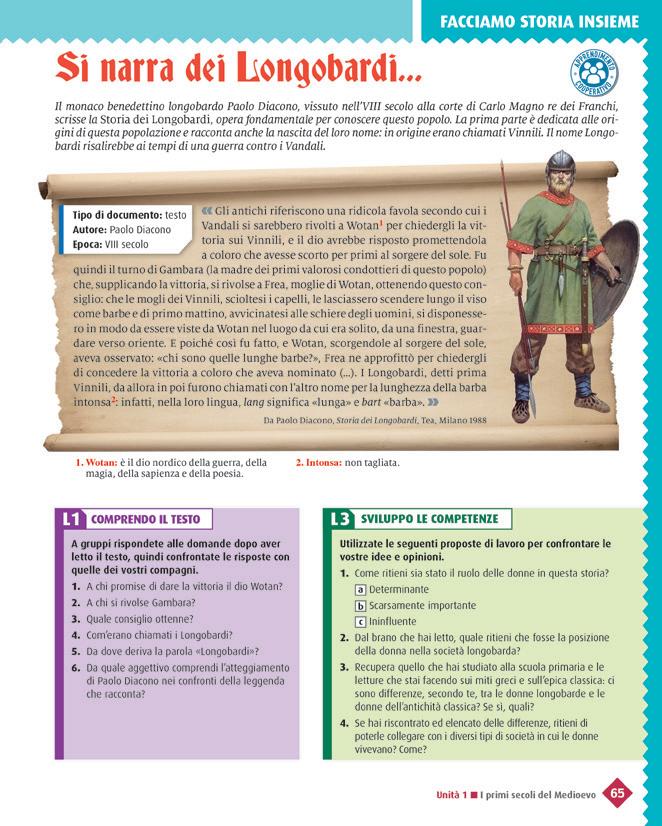 Domande per verificare la comprensione base del testo. Nelle pagine «Facciamo storia insieme» le attività hanno una modalità cooperativa.