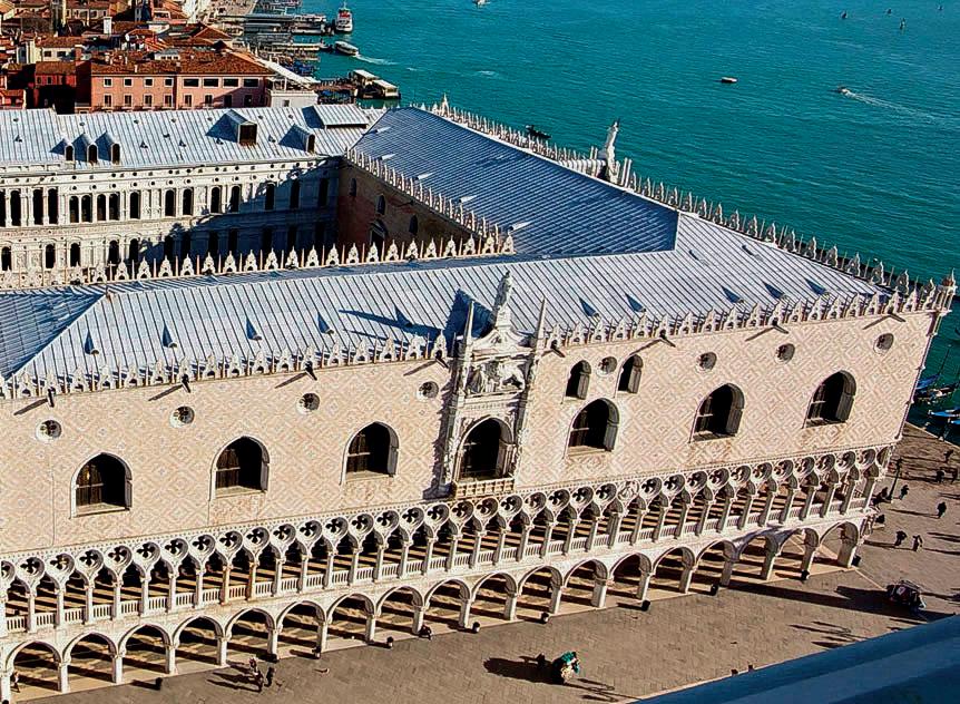 tutta Europa, dove si potevano trovare le preziose merci orientali e il centro del mercato degli schiavi. Mercanti forestieri stabilirono una propria sede a Venezia, come fecero i tedeschi nel loro fondaco, che oltre a essere magazzino e deposito per le merci, era anche un albergo per i mercanti. Palazzi di pregio furono costruiti sul Canal Grande e nel 1340 fu avviata la costruzione del Palazzo Ducale. Sede delle istituzioni cittadine, sorse affacciato sul fronte portuale e costituì da subito l’elemento fondamentale di presentazione di Venezia per quanti vi giungevano.