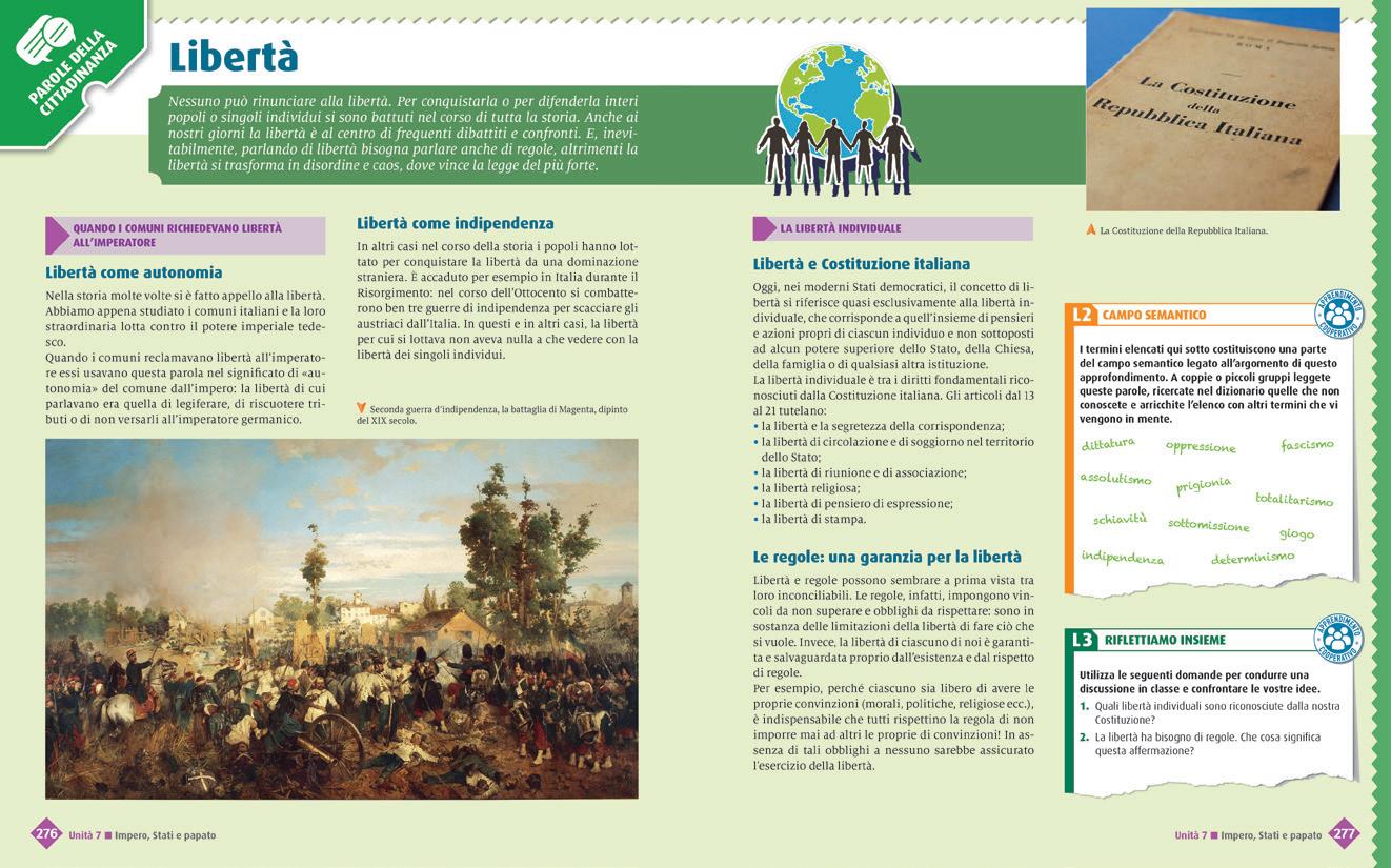 Attività di riflessione sulla lingua e sulla grammatica italiana che partono dal testo. Nelle pagine «Parole della cittadinanza» il lavoro è finalizzato all’arricchimento lessicale.