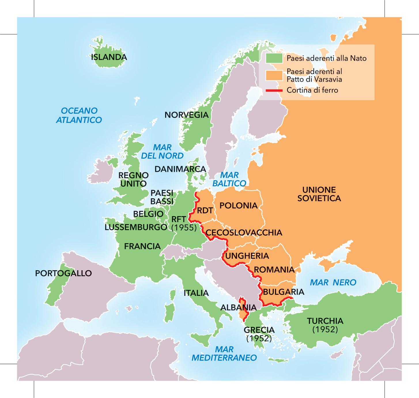 I Paesi dell’Europa occidentale aderirono al Patto atlantico, un’organizzazione internazionale di carattere difensivo fondata nel 1949.