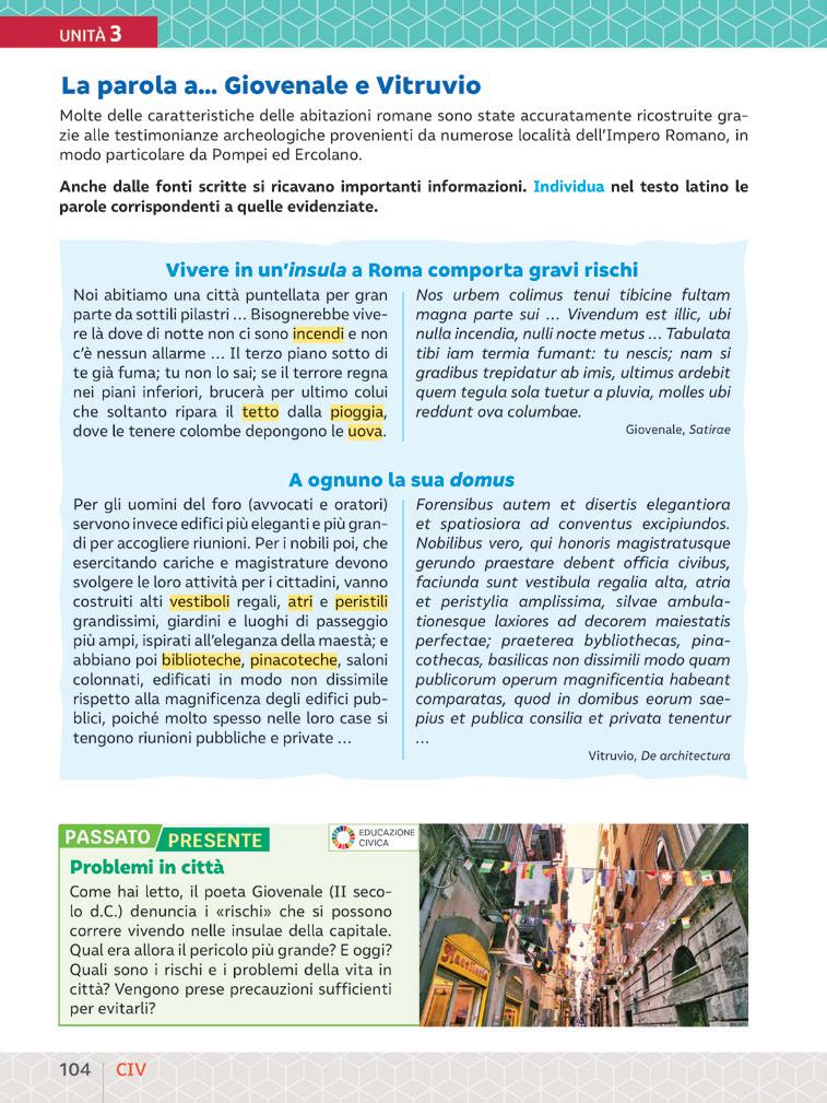 La vita dei Romani è testimoniata dalle parole degli antichi. Ogni brano d’autore, con traduzione a fronte, è accompagnato da una riflessione di Educazione civica, per mettere a confronto il passato e la nostra quotidianità.