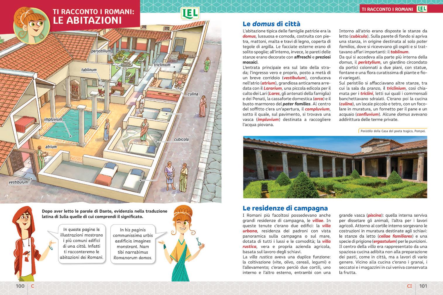 Ricostruzioni illustrate e schede di lessico dedicate mostrano e approfondiscono i termini specifici di ogni argomento di civiltà.