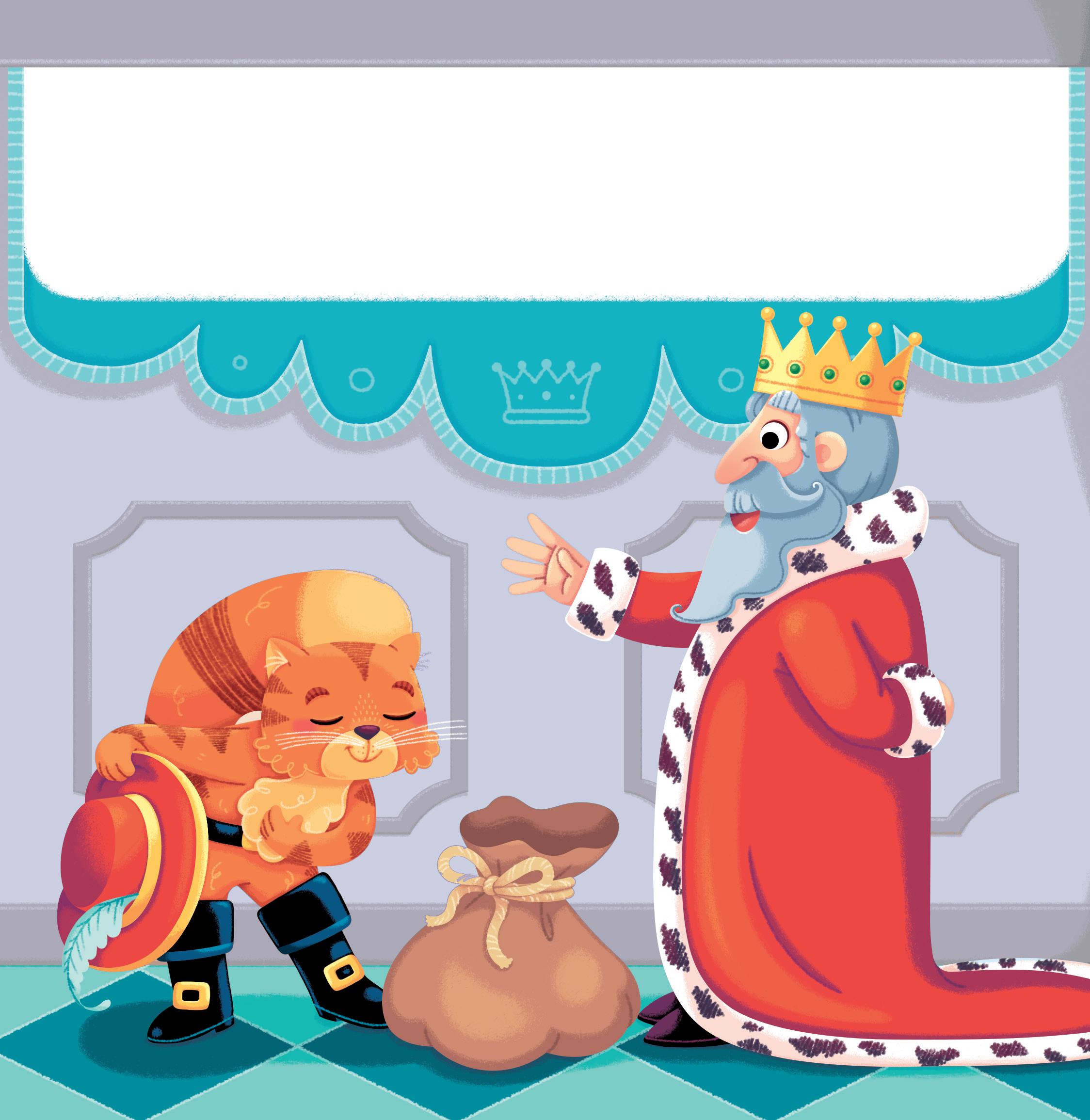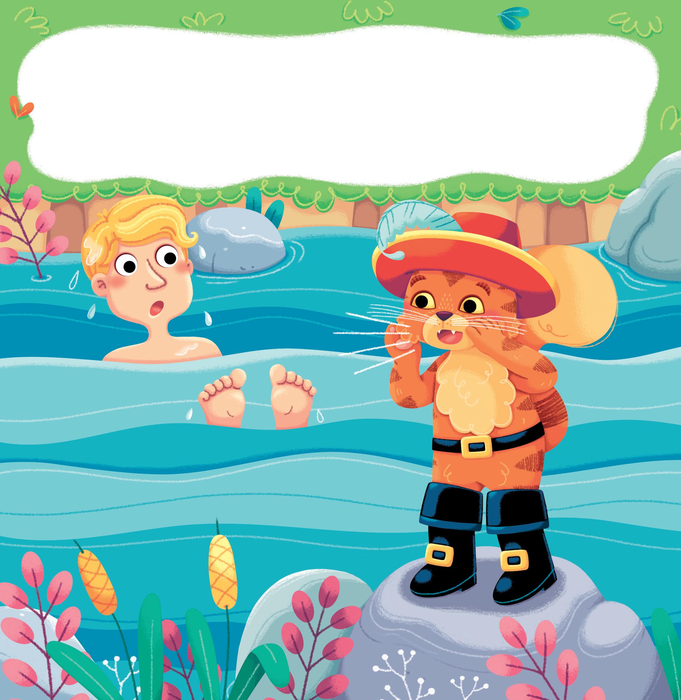 Qualche giorno dopo, il gatto fa in modo che il padrone si bagni nel fiume vicino e, all’arrivo del re, grida: ”Aiuto: il Marchese di Carabas è stato aggredito e derubato!” Il re accorre e lo trae in salvo, poi lo veste con abiti sontuosi e si offre di riportarlo a casa.