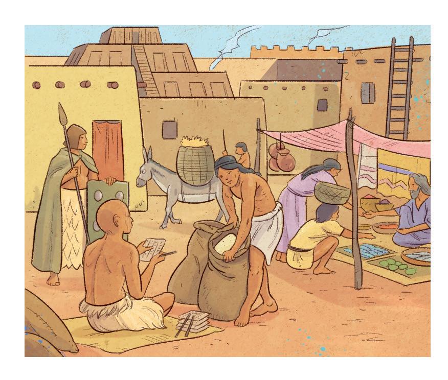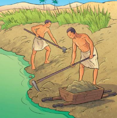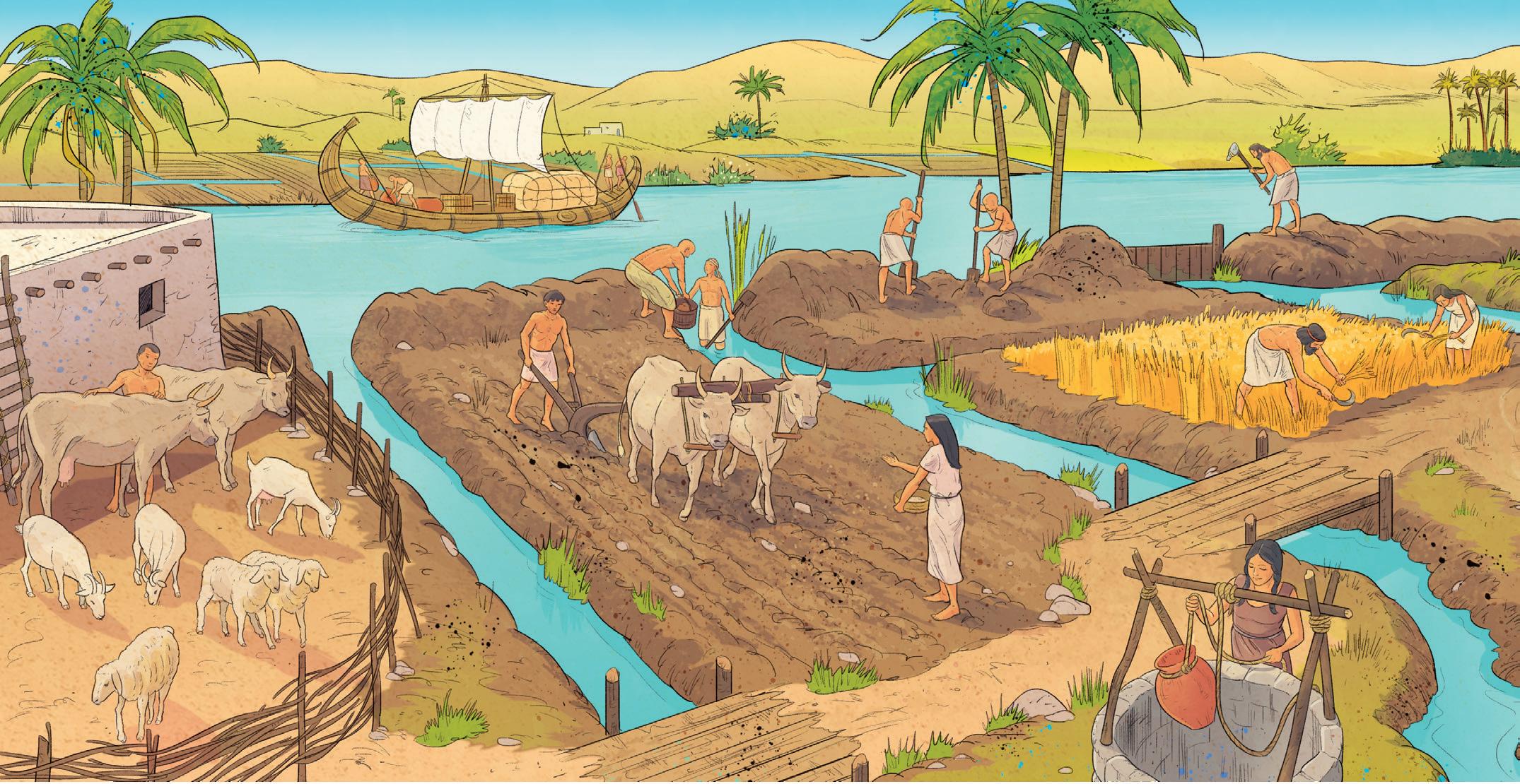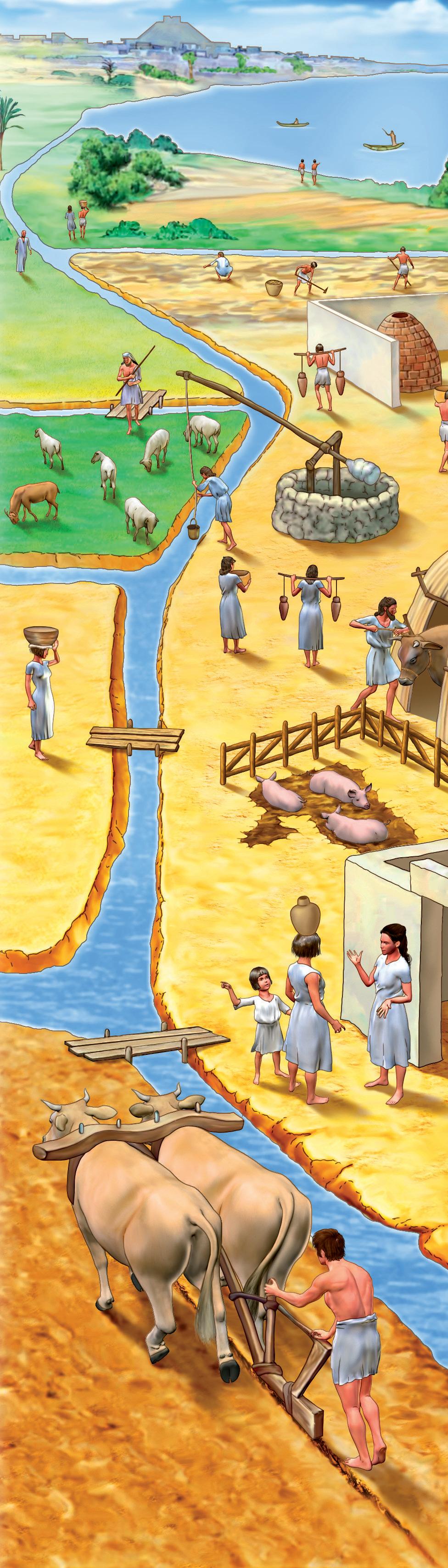 I contadini usano l’aratro, tirato dagli animali per seminare, e danno al re, come tassa, una parte del loro raccolto.