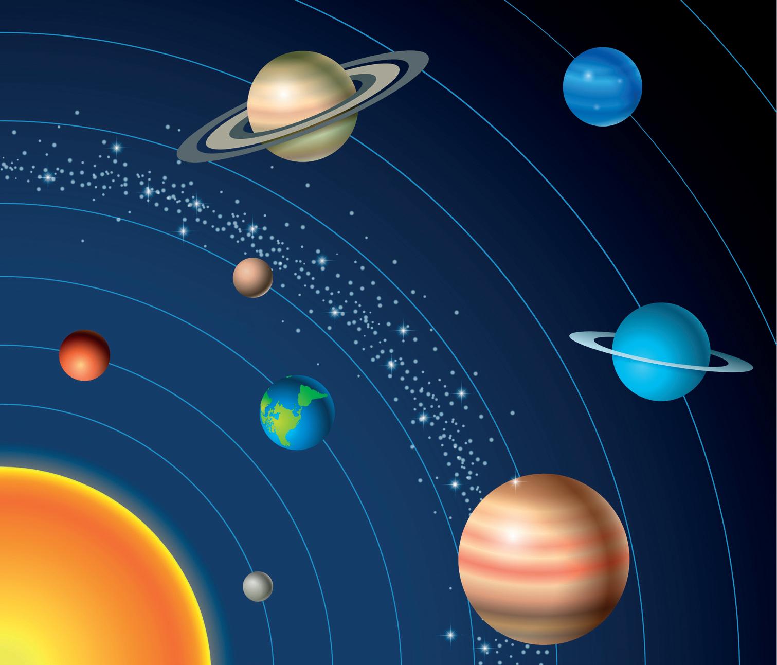 Mercurio, Venere, Terra e Marte (pianeti rocciosi), Giove, Saturno, Urano e Nettuno (pianeti gassosi). Tutti orbitano attorno a una stella, il Sole.