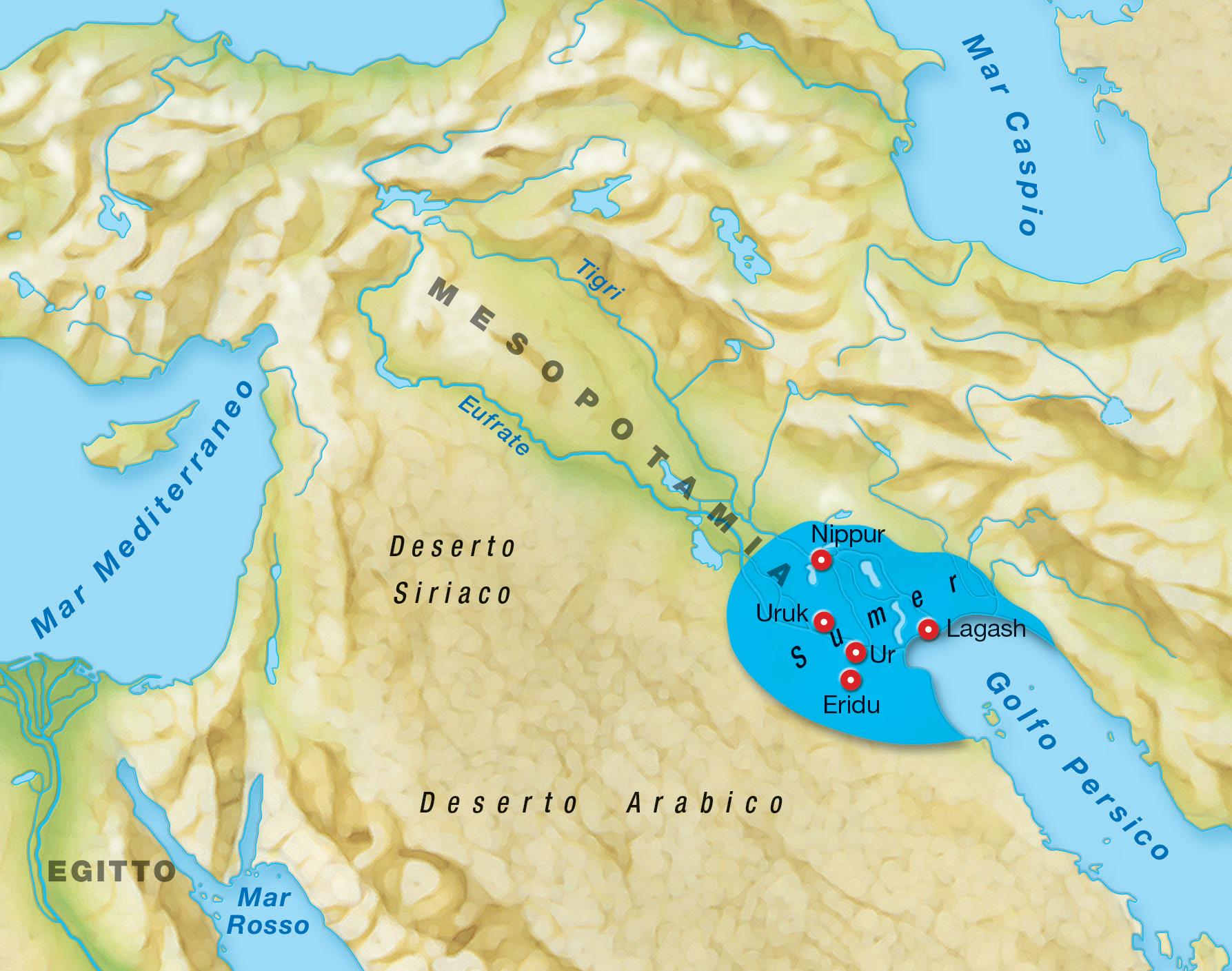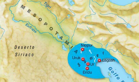 I Sumeri si stabiliscono in Mesopotamia, tra i fiumi Tigri ed Eufrate, intorno al 4000 a.C. La civiltà sumera dura fino al 2000 a.C.
