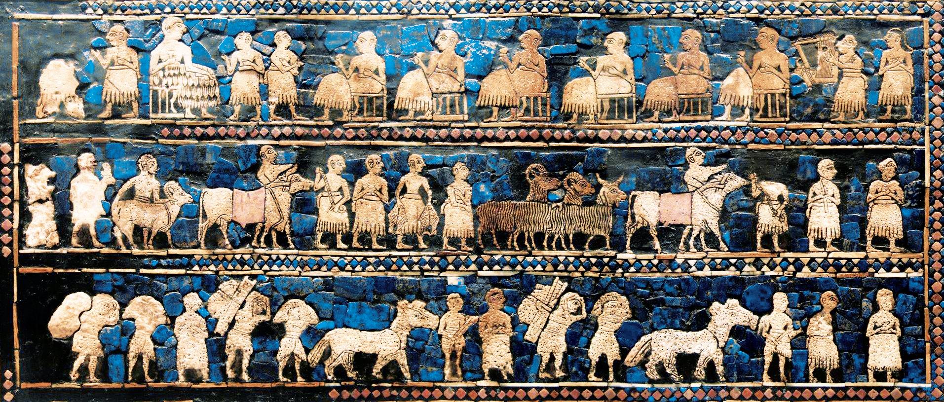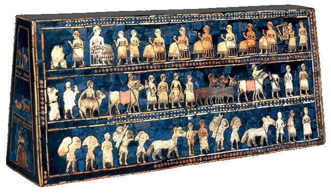 Uno dei reperti storici più importanti della civiltà sumera è lo Stendardo di Ur. Risale al 2500 a.C. ed è una specie di cofanetto (largo 48 cm e alto 20 cm), composto da quattro pannelli di legno decorati: su uno dei due pannelli più grandi si vedono immagini di guerra con soldati e carri, sull’altro è raffigurato un banchetto nel quale il re e i suoi funzionari festeggiano la pace