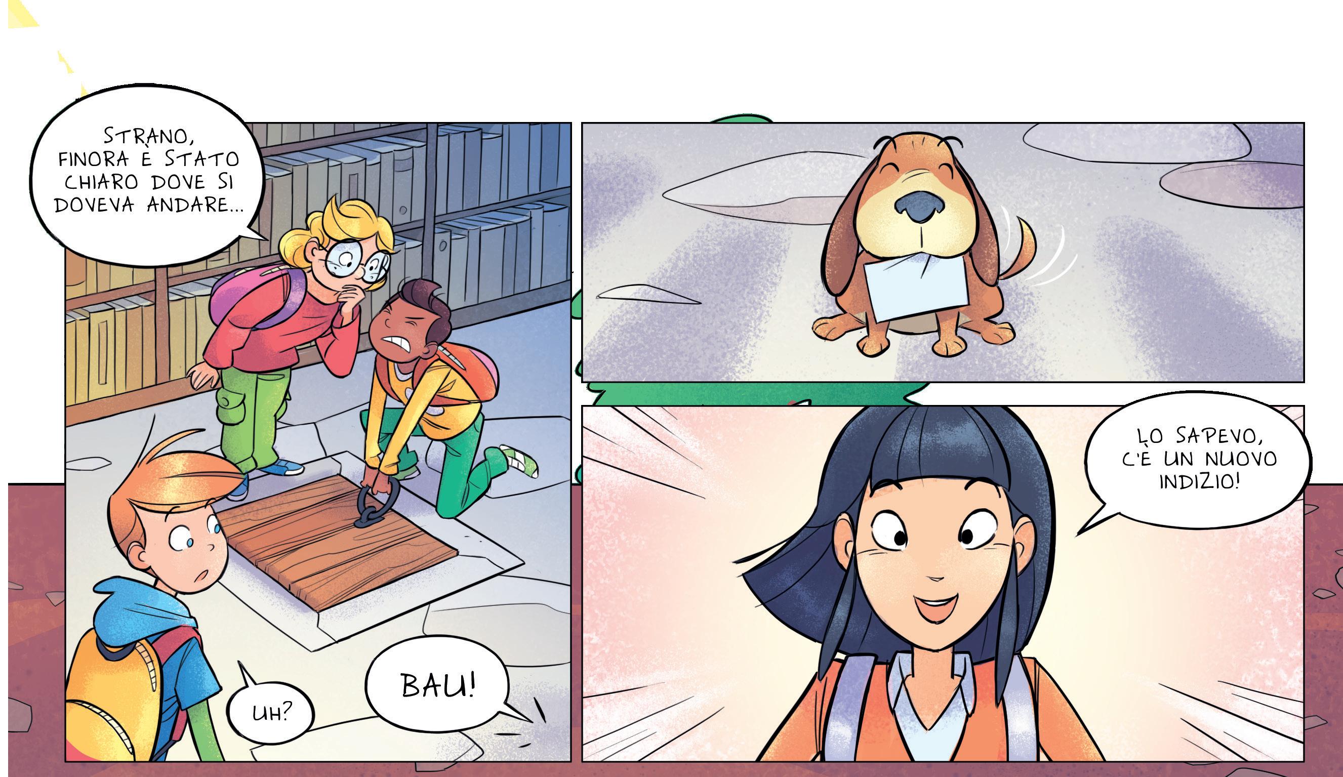 Interrogato, il direttore non ha un alibi: vive solo e nessuno può testimoniare che quella notte è rientrato a casa. Il caso sembrerebbe chiuso, ma Lucy Curiosi non è convinta. Allora torna nello studio e continua le ricerche finché non trova un oggetto: è una targhetta con su scritto “guardia notturna”. Di corsa torna nella stanza della guardia, nell’armadietto trova una fondina senza pistola e la giacca. La prende... sul davanti manca qualcosa: indovina cosa?