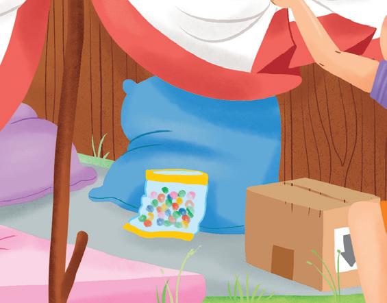 Una notte d’estate la bambina e le sue amiche dormono dentro la capanna provando il brivido di una vera avventura.